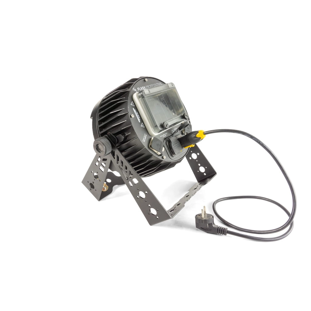 Reflektor LED PAR przeznaczony do pracy w warunkach podwyższonej wilgotności, odporny na pył i deszcz. W skali szczelności obudowa sklasyfikowana została jako IP65 co pozwala na używanie go na wydarzeniach plenerowych lub jako oświetlenie architektoniczne bez obawy o uszkodzenie spowodowane warunkami atmosferycznymi. Pasywny układ chłodzenia (brak wentylatora) czyni go również doskonałym rozwiązaniem w miejscach, gdzie wymagane jest zastosowanie całkowicie bezgłośnego oświetlenia. Urządzenie posiada wszystkie zalety standardowego reflektora 19x10W Flash Professional z zastosowanym oprogramowaniem Mk2.