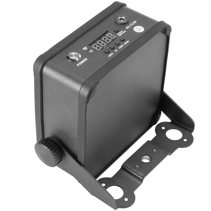 Oprócz stałego źrodła zasilania (AC) zastosowano w tym urządzeniu, wydajną technologię akumulatorową, opartą na bateriach litowych (18650) których ładowanie i rozładowywanie może osiągnąć ponad 500 razy. Pełne ładowanie akumulatorów, zajmuje +/- 5h, co umożliwia 3-4h pracy reflektora na maksymalnej mocy świecenia, +/-15 godzin w trybie monochromatycznym i +/- 8h w trybie własnym. Ponadto ten wielozadaniowy reflektor umożliwia wiele trybów sterowania: bezprzewodowy DMX 512, DMX512, Sound control, Auto control, Master-slave, IR, Phone Application..